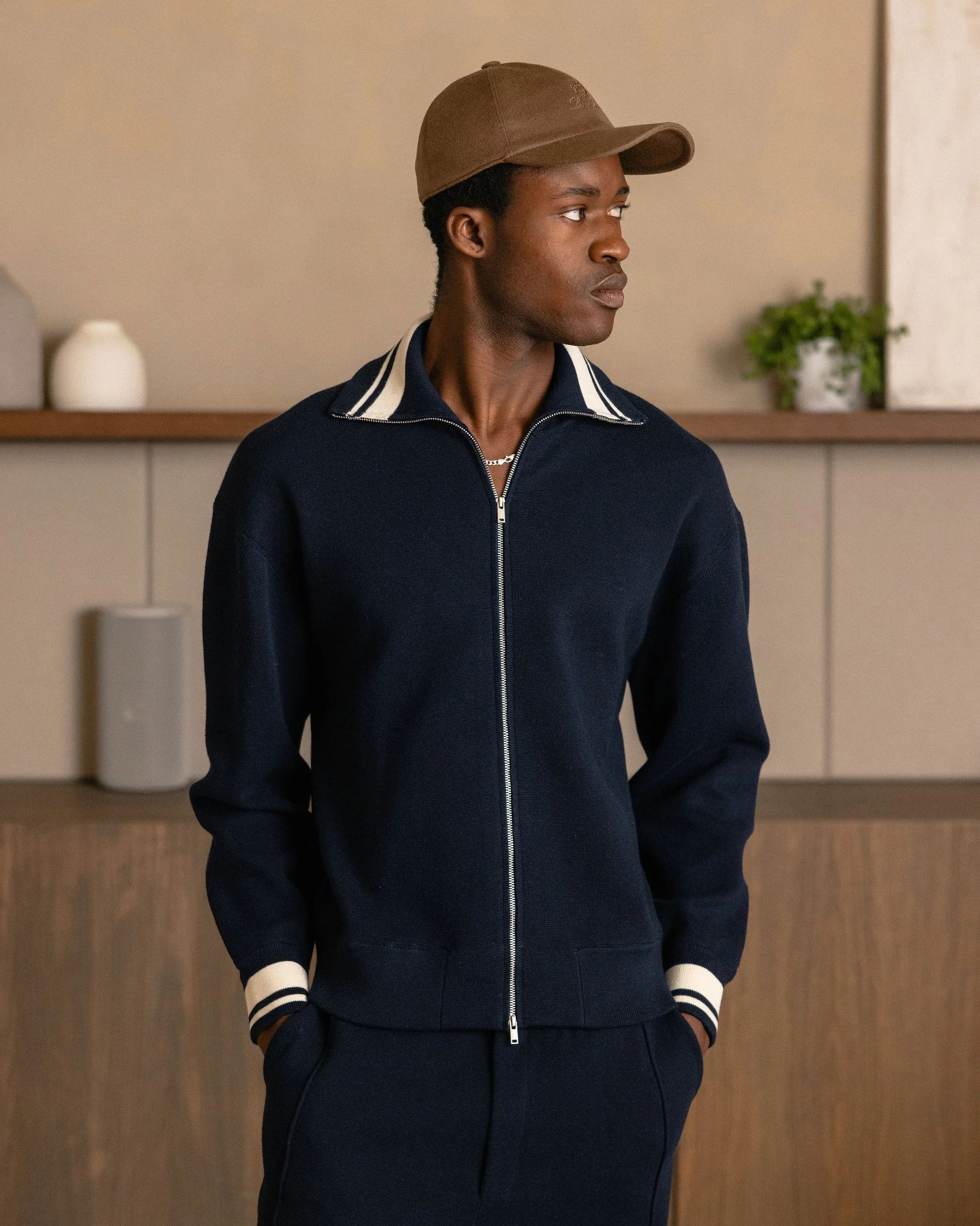 Every detail is designed with precision — from the ribbed collar and cuffs to the dual 2-way zipper and perfectly tailored lines. The Verona Knit Luxe Set stands out for its refined construction, offering a premium look suitable for both casual sophistication and upscale streetwear.